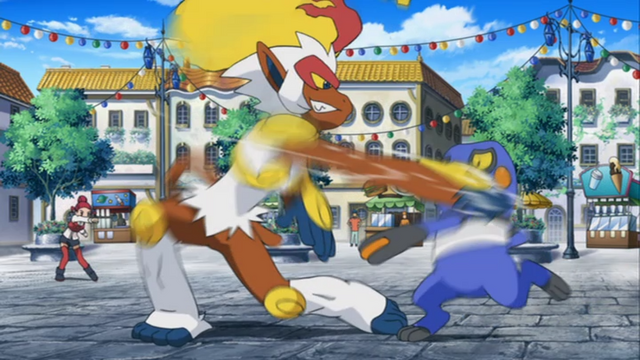 In case you haven't read the Pokedex mountain entry, this guy can lift mountains with a single hand. In addition to that, he can punch 1,000 times in 2 seconds. That's each arm punching 150 mountains away per second, assuming 500 mountains were flying at him every second. Mountain punching abilities aside, he learns Dynamic Punch which hits for 150 damage (thanks to STAB) and confuses the target, as well as learning Cross Chop before Lucario learns Close Combat. However, the Superpower Pokemon (yes, that's really what he's called) has his drawbacks: stats. His total stats are a mere 505, not bad compared to some other Pokemon (rattata, I'm talking about you), but compared to Lucario's 225 and Blaziken's 230, you can really begin to see his weakness. However, Machamp is by no means a weak Pokemon, and he would kick Lucario's butt due to Lucario being part steel type.